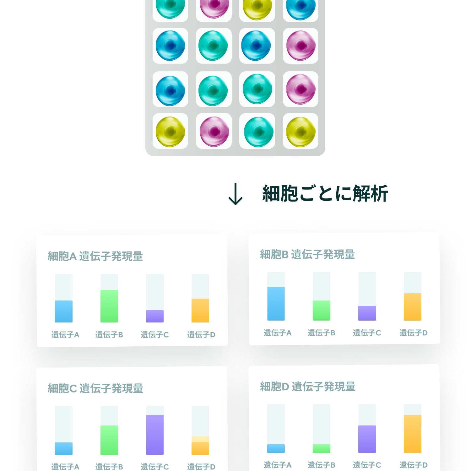 組織を構成する個々の細胞の遺伝子発現を調べる方法です。